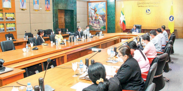 CBM Deputy Governor Dr Lin Aung, the directors-general and deputy directors-general of the Central Bank of Myanmar attended the meeting.