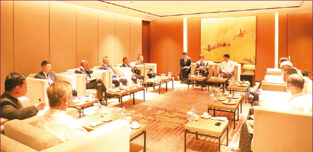 Mr Li Chenyang of the Commerce Department of People’s Republic of China (Yunnan Province) and President U Aye Win of the Republic of the Union of Myanmar Federation of Chambers of Commerce and Industry-UMFCCI had a discussion at the Wyndham Grand Hotel in Yangon on 15 February.