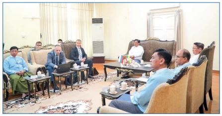UNION Minister for Industry Dr Charlie Than received the Russian Federation delegation led by Mr Roman Siurin, head of the International Project Department of SMM Company yesterday afternoon at the ministry in Nay Pyi Taw.