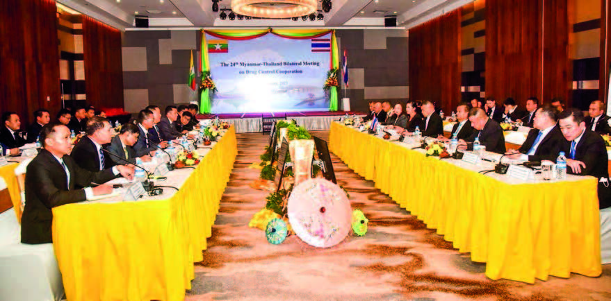 At the meeting, Central Committee for Drug Abuse Control Secretary Deputy Minister for Home Affairs Chief of Myanmar Police Force Maj-Gen Zin Min Htet said that narcotic drugs are one of the biggest problems every country in the world is faced with, that drug trafficking and drug abuse are related to transnational crimes and are growing and that the problem continues to be a challenge that can pose negative consequences to health, economic and social matters and national development of all the countries.
