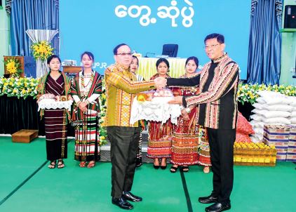 Then, SAC Member Deputy Prime Minister Union Defence Minister General Mya Tun Oo presented K20 million for the diamond jubilee celebration to the chief minister of Chin State.