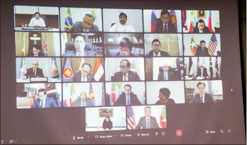 UNION Minister for Foreign Affairs U Than Swe met heads and charge d’affaires of Myanmar Embassies and Permanent Representative Offices in the America Zone, Europe Zone, Middle East and Africa Zone via videoconferencing yesterday.