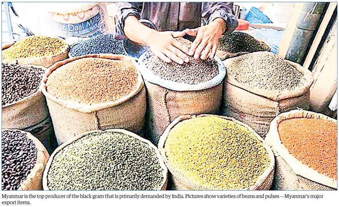Myanmar primarily exports black gram, green gram and pigeon peas. Of them, black gram and pigeon peas are mainly sent to India while green grams are shipped to China and Europe.