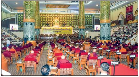 At noon, the respective Sayadaws presented the reports of matters related to Vinicchaya, Sasana and education of the State Sangha Maha Nayaka Committee and concluded the first-day meeting.