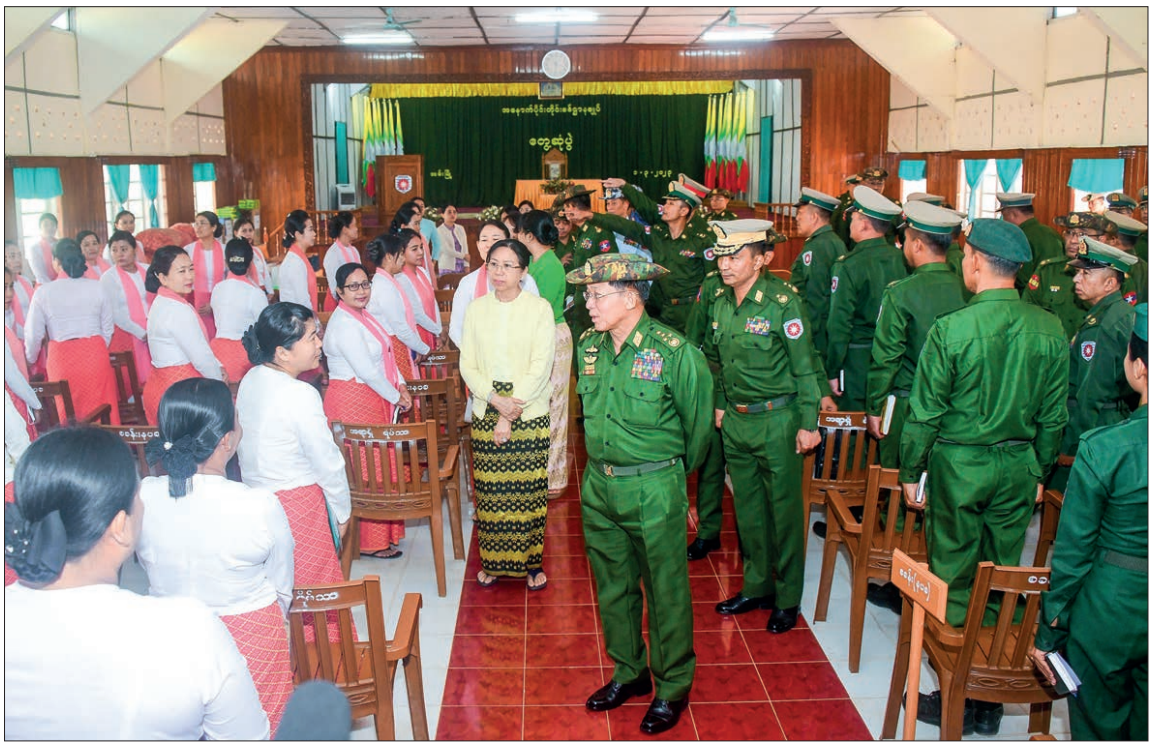 The Senior General presented foodstuffs for Tatmadaw members and families to the commander, and the wife of the Senior General, cash awards for the station maternal and child welfare association to the wife of the commander. The Senior General fulfilled the requirements of Tatmadaw members and families.