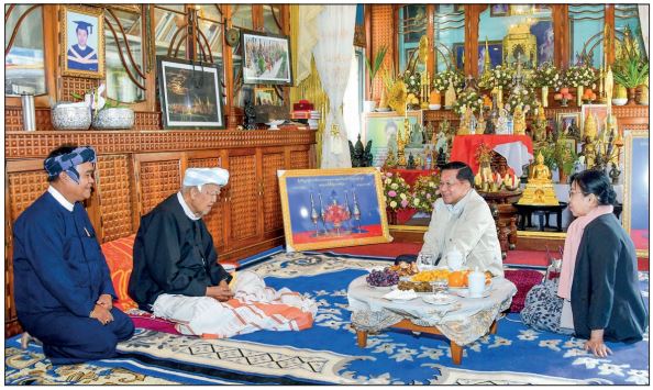 CHAIRMAN of the State Administration Council Prime Minister Senior General Min Aung Hlaing, accompanied by his wife Daw Kyu Kyu Hla and officials, went to Kyauktalongyi of Pa-O Self-Administered Zone yesterday morning to talk about regional development tasks.