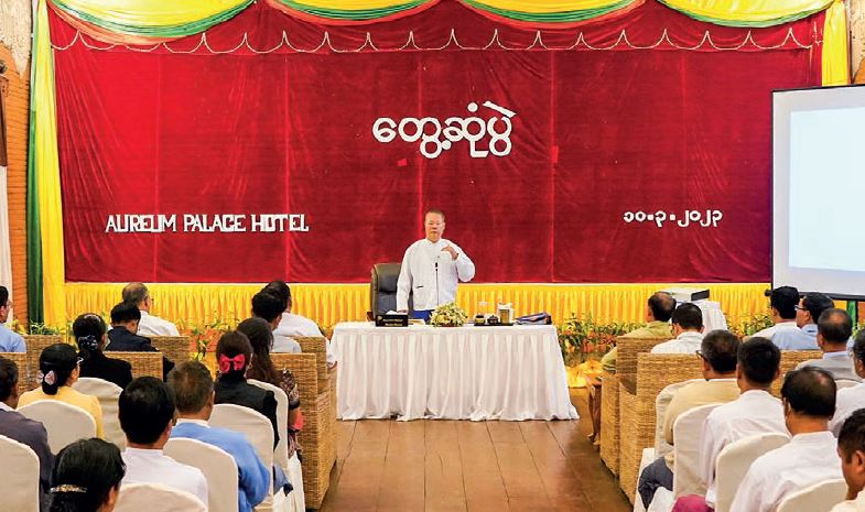 UNION Minister for Hotels and Tourism U Aung Thaw on 10 March met with departmental officials and officials and entrepreneurs from hotels and tourism associations at the Aureum Palace Hotel and Resort in Bagan.