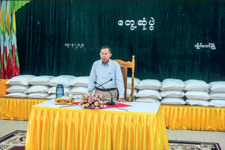 The Vice-Senior General, SAC members Porel Aung Thein and Khun San Lwin and Lt-Gen Aung Aung from the Office of the Commander-in-Chief (Army) presented rice, cooking oil and foodstuffs to leaders of religious organizations and cordially greeted them.