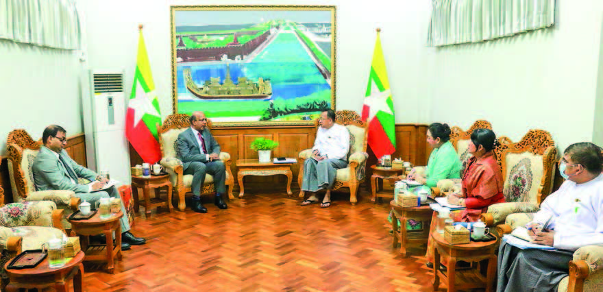 DR Kan Zaw, Union Minister for Investment and Foreign Economic Relations, received Mr Vinay Kumar, Ambassador of the Republic of India to the Republic of the Union of Myanmar at Ministry of Investment and Foreign Economic Relations in Nay Pyi Taw yesterday morning.