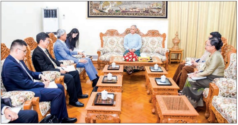 UNION Minister for Commerce U Aung Naing Oo received a delegation led by Mr Chen Hai, Chinese Ambassador to Myanmar at the ministry in Nay Pyi Taw yesterday.