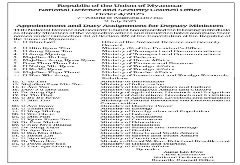 Republic of the Union of Myanmar National Defence and Security Council Office Order 4/2025