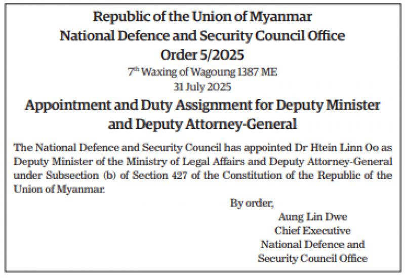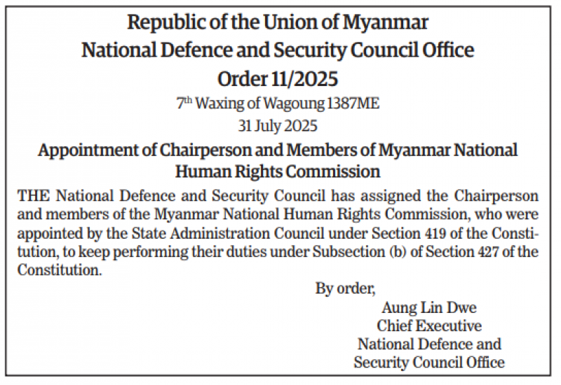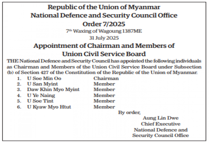 Republic of the Union of Myanmar National Defence and Security Council Office Order 7/2025