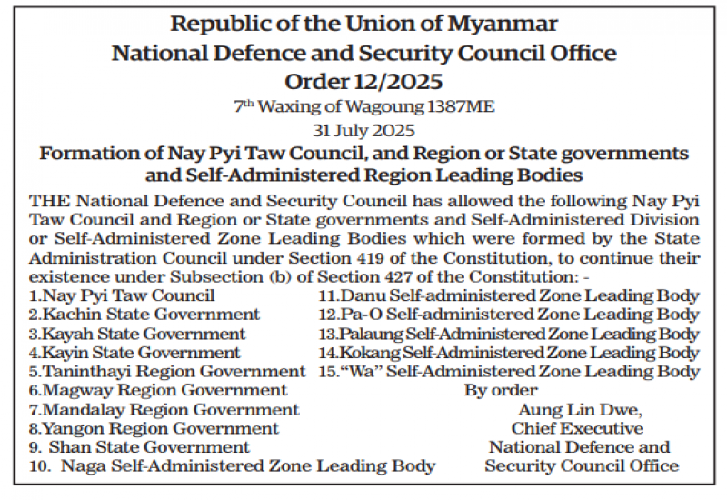 Republic of the Union of Myanmar National Defence and Security Council Office Order 12/2025