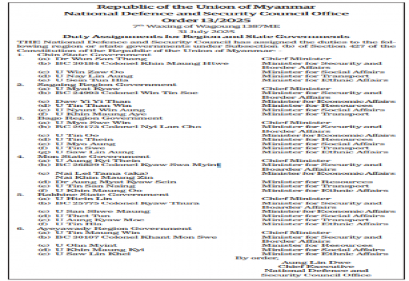 Republic of the Union of Myanmar National Defence and Security Council Office Order 13/2025