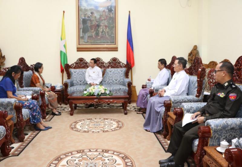 Union Minister for Immigration and Population U Myint Kyaing received UNHCR Resident Representative Ms Noriko Takagi and team at the meeting hall of the Ministry in Nay Pyi Taw yesterday afternoon.