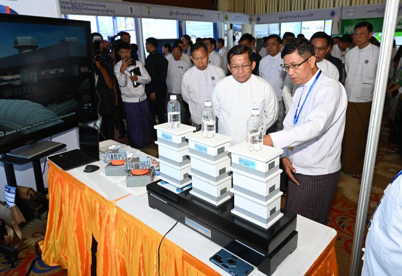 Union Minister for Industry Dr Charlie Than, accompanied by Shan State Chief Minister U Aung Aung, attended the ceremony for the test run of Air Compressors installed at the air purification plant of the No 2 Steel Mill (Pangpet) in Taunggyi Township of Shan State on 26 July.