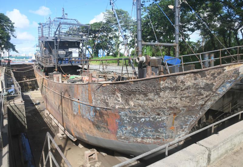 Chairman of the State Administration Council, Prime Minister Senior General Min Aung Hlaing, accompanied by his entourage, the chief minister of Yangon Region, the commander of Yangon Command and Yangon Mayor U Bo Htay, inspected the functioning of the Gyoungwaing Shipyard in Gyoungwaing Village of Kyimyindine Township, Yangon Region, yesterday afternoon.