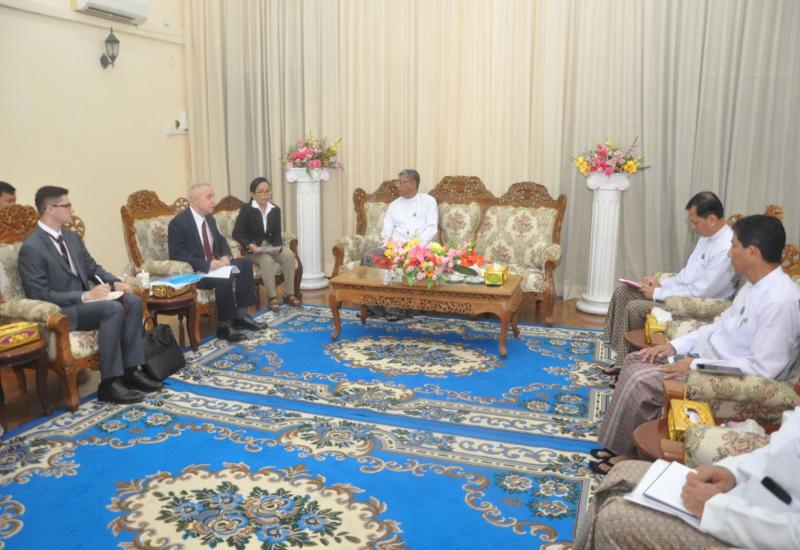 Deputy Minister U Lu Mon of the Ministry of Transport and Communications received a delegation led by Mr Konstantin Kanarev, Trade Representative of the Russian Federation to Myanmar, at the Ministry of Transport and Communications yesterday morning.
