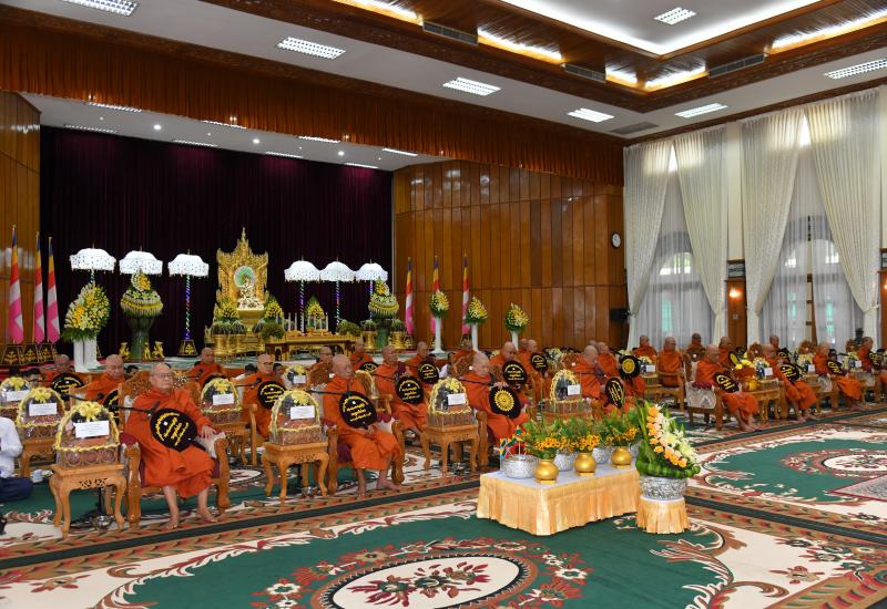 Families of the Office of the Commander-in-Chief (Army, Navy and Air) held the Waso robe offering ceremony for 2025 at Anawrahta Hall of the Office of the Commander-in-Chief (Army) yesterday morning, attended by Chairman of the State Administration Council, Commander-in-Chief of Defence Services Senior General Min Aung Hlaing and his wife Daw Kyu Kyu Hla.