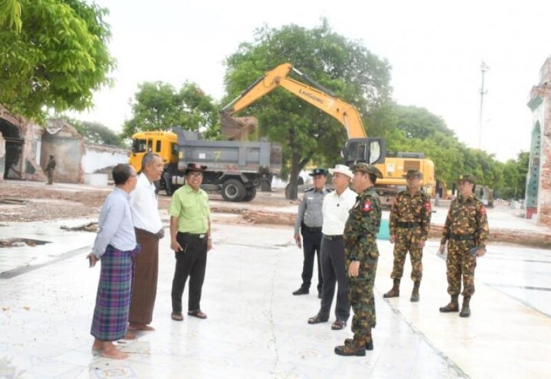 Union Minister for Information U Maung Maung Ohn inspected the three-storey RC Sarso Beikman construction site in Mingala Taungnyunt Township of Yangon yesterday.