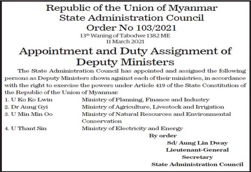 Vice-Chairman of the State Administration Council Deputy Command-er-in-Chief of Defence Services Commander-in-Chief (Army) Vice-Senior General Soe Win met officers, other ranks, their families and cadets in Bahtoo, PyinOoLwin stations separately and delivered addresses.