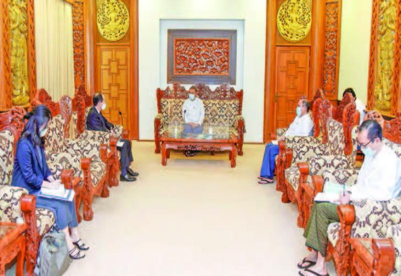 U WUNNA MAUNG LWIN, Union Minister for Foreign Affairs of the Republic of the Union of Myanmar received Mr Maruyama Ichiro, Ambassador of Japan to Myanmar, at 10:30 am on 8 March 2021 at the Ministry of Foreign Affairs, Nay Pyi Taw.