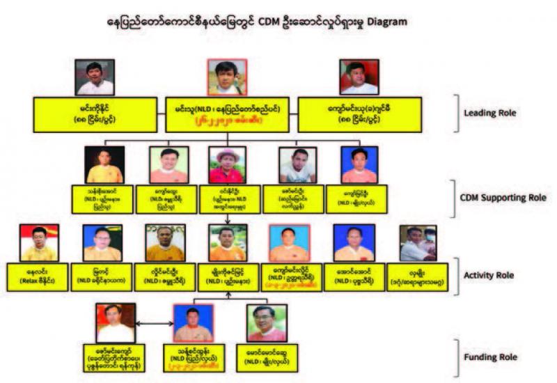 U MIN THU, an exmember of the Nay Pyi Taw Development Affairs Committee, has been charged under Section 505-a of the Penal Code at the Pattar Area Police Station in Pobbathiri Township for manipulating the Civil Disobedience Movement-CDM.