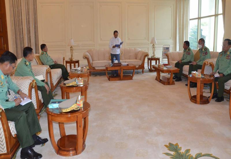 The National Defence and Security Council (NDSC) of the Republic of the Union of Myanmar held a meeting at the President House yesterday morning. Present at the meeting were Acting President U Myint Swe, Commander-in-Chief of Defence Services Senior General Min Aung Hlaing, Deputy Commander-in-Chief of Defence Services Commander-in-Chief (Army) Vice-Senior General Soe Win and members of the NDSC.