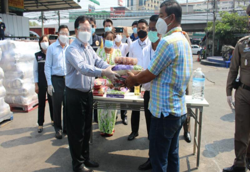 The Government of Myanmar supplied foodstuffs to the Myanmar migrant workers being quarantined because of coronavirus outbreak at a seafood market in Samut Sakhon Province, Thailand.