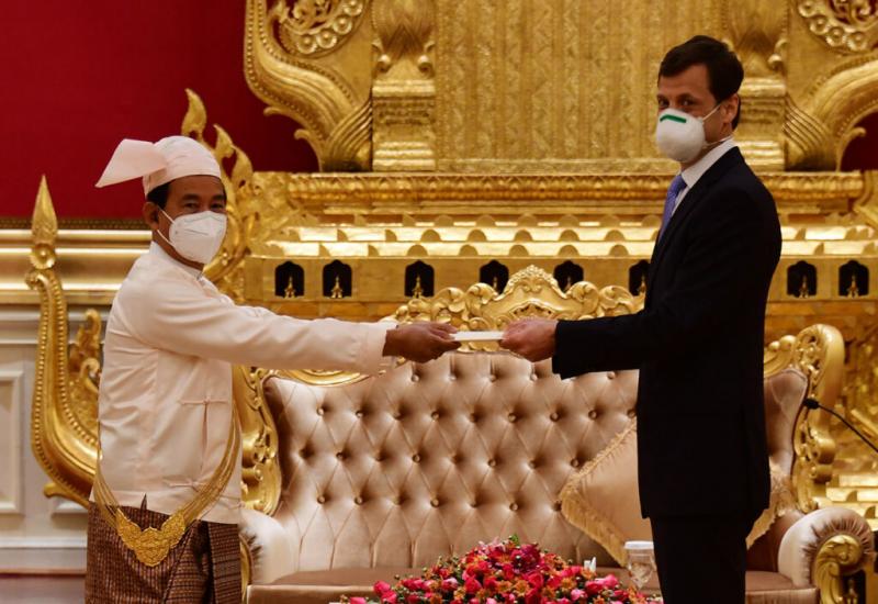 U Win Myint, President of the Republic of the Union of Myanmar, accepted the credentials of Mr Thomas Laszlo Vajda, the newly-accredited Ambassador of the United States of America to the Republic of the Union of Myanmar, at the Credentials Hall of the Presidential Palace in Nay Pyi Taw at 10 am yesterday.