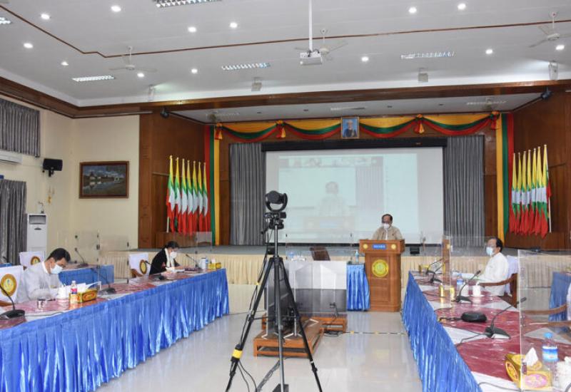 Union Minister for Health and Sports Dr Myint Htwe presided over the meeting via videoconferencing yesterday to discuss the resumption of medical courses at the universities under the ministry.