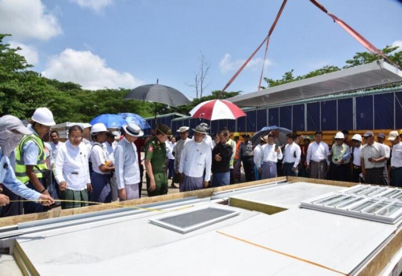 State Administration Council Member Union Minister for Border Affairs Lt-Gen Yar Pyae, accompanied by Deputy Minister Maj-Gen Phyo Thant, inspected the newly constructed emergency shelters for the quake-stricken staff yesterday.