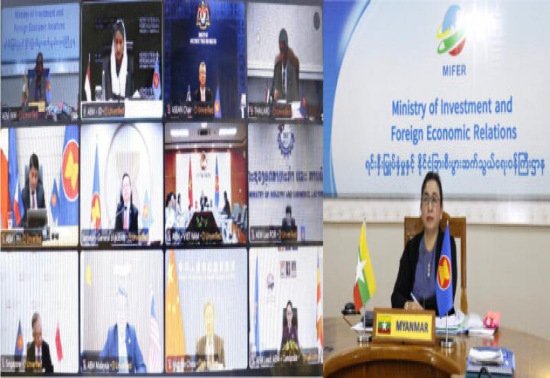The delegation led by Dr Wah Wah Maung, Deputy Minister for Investment and Foreign Economic Relations, attended the Special ASEAN Economic Ministers-Ministry of Commerce (AEM-MOFCOM) Consultation, the Special AEM-Closer Economic Relations (AEM-CER) Consultation and the Special AEM-Ministry of Economy, Trade and Industry (AEM-METI) Consultation via videoconference on 20 May 2025.