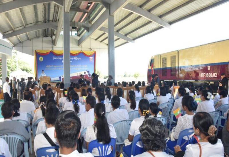 A ceremony to inaugurate the launch of a battery electric locomotive with air-conditioned carriages on the Nay Pyi Taw–Mandalay railway section was held yesterday morning at Platform No 1 of the Nay Pyi Taw Railway Station.