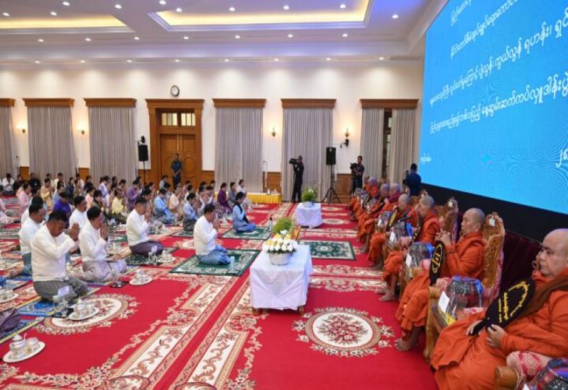 The State Administration Council of the Republic of the Union of Myanmar held a ceremony to offer day meals to members of the Sangha as a one-month memorial donation dedicated to monks and people who lost their lives in the incident of the powerful Mandalay earthquake, in Nay Pyi Taw Union Territory yesterday morning.