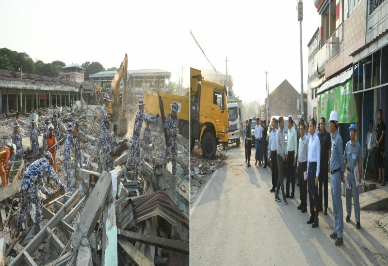 Vice-Chairman of the State Administration Council Deputy Prime Minister, Vice-Senior General Soe Win, who is also Chairman of the National Disaster Management Committee, inspected the damage to the No 1 Myoma Market in Pyinmana and the Institute of Agriculture and Livestock Breeding caused by the earthquake in Nay Pyi Taw Council Area yesterday afternoon.