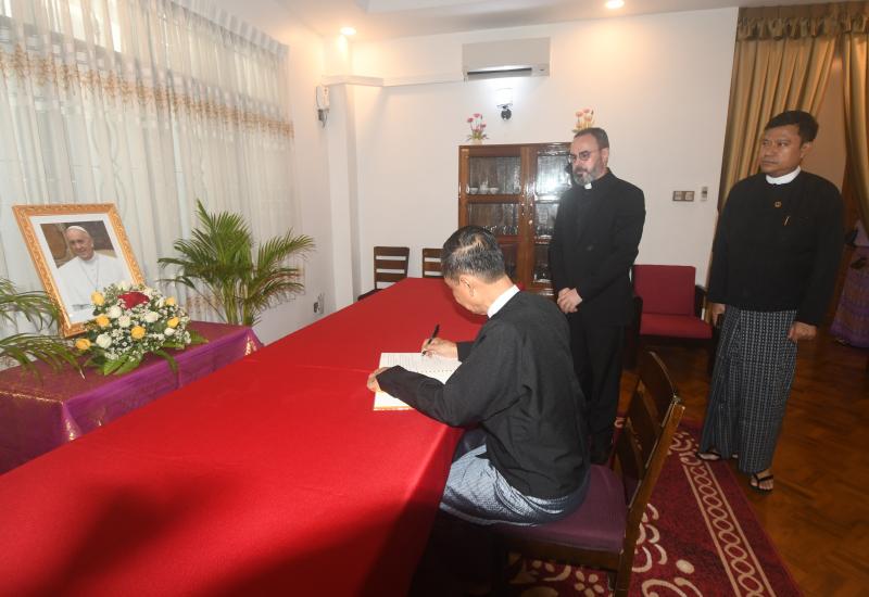 IN memory of Pope Francis, who passed away on 21 April, Union Minister for Ministry 2 at the Office of the State Administration Council Chairman U Ko Ko Hlaing signed the condolence book at the Holy See (Vatican City) Embassy in Yangon yesterday afternoon.