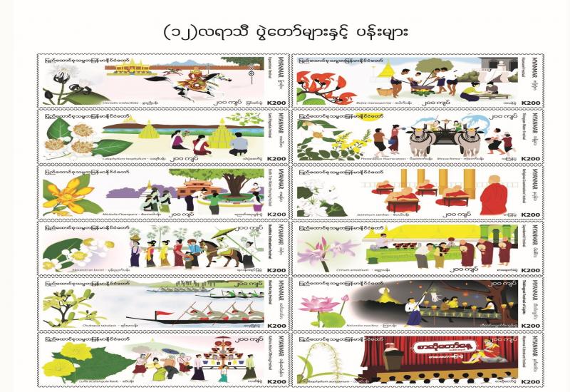 MYANMA Post under the Ministry of Transport and Communications will issue a special block stamp worth K2,400 to commemorate the twelve seasonal festivals and flowers.