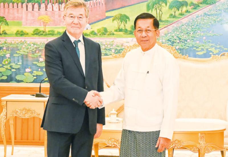 Chairman of the State Administration Council Prime Minister Senior General Min Aung Hlaing yesterday morning received Ambassador Mr Iskander Azizov of the Russian Federation to Myanmar at the Office of SAC Chairman in Nay Pyi Taw.