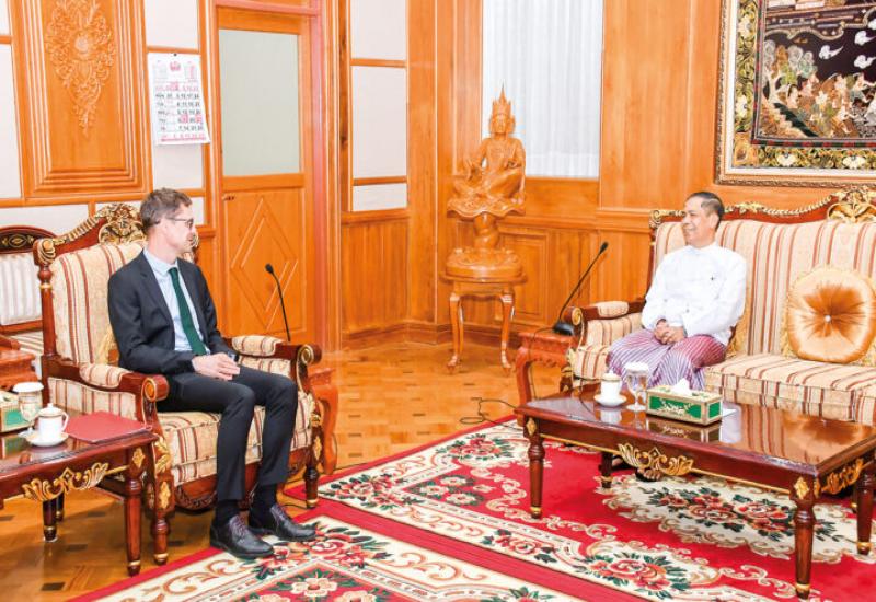 Union Minister for Ministry 2 at the Office of the State Administration Council Chairman U Ko Ko Hlaing received Mr Arnaud de Baecque, Resident Representative of the International Committee of the Red Cross (ICRC), yesterday morning at the parlour of the Office of the State Administration Council in Nay Pyi Taw.