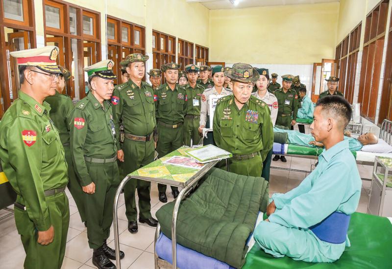State Administration Council Vice-Chairman Deputy Commander-in-Chief of Defence Services Commander-in-Chief (Army) Vice-Senior General Soe Win, accompanied by senior Tatmadaw officers from the Office of the Commander-in-Chief, the Eastern Command commander and officials, yesterday morning visited the Tatmadaw hospital in Aungban of Shan State (South). He comforted Tatmadaw members and people’s militia (local) troops who were receiving medical treatment.