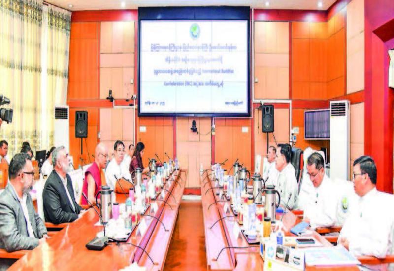 Union Minister for Information U Maung Maung Ohn met with Venerable Shartse Khensur Rinpoche Jangchup Choeden, General Secretary of the International Buddhist Confederation (IBC), a Buddhist organization under India’s Ministry of Culture, and his team at the Ministry of Information in Nay Pyi Taw at 10 am yesterday.