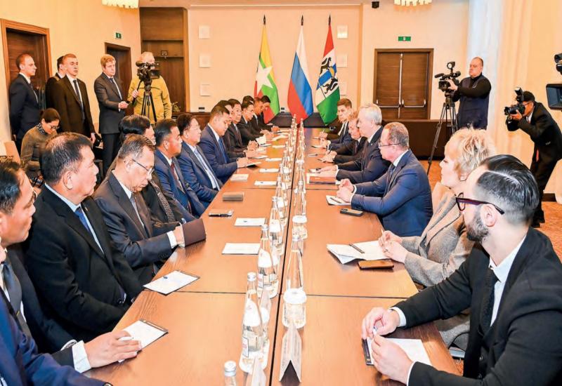 Chairman of the State Administration Council Prime Minister Senior General Min Aung Hlaing, who arrived in Novosibirsk of the Russian Federation received Andrey Alexandrovich Travnikov, the Governor of Novosibirsk, at Grand Autograph Hotel in Novosibirsk yesterday morning.