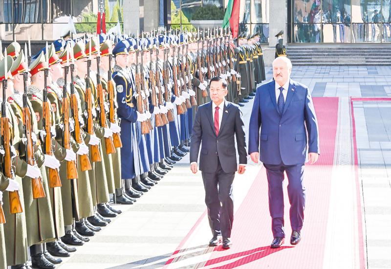 State Administration Council Chairman Prime Minister Senior General Min Aung Hlaing, who is currently in Belarus on his official State visit at the invitation of President Mr Alexander Gregoryevich Lukashenko of the Republic of Belarus, was welcomed by the President of the Republic of Belarus alongside the Guard of Honour at the Presidential Palace yesterday morning.