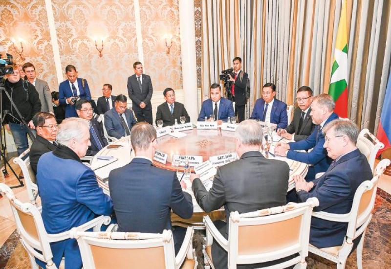 Union Minister for Energy U Ko Ko Lwin met Russian Deputy Minister of Energy Mr Pavel Sorokin and Mr Alesksander Boldyrev, Head of the International Relations Department of the Russian state-owned oil and gas company Zarubezhneft, during the Russian visit of the State Administration Council Chairman and Prime Minister.