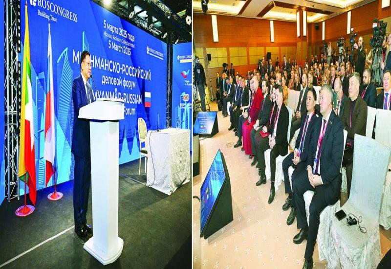 The Russia-Myanmar Business Forum, jointly organized by the Myanmar Embassy to the Russian Federation, the Republic of the Union of Myanmar Federation of Chambers of Commerce and Industry-UMFCCI and Myanmar Airways International (MAI), Roscongress Foundation, Fund RC-Investments, Russia-ASEAN Business Council and Russia-Myanmar Business Council, took place at the Business Hall of Radisson Collection Hotel in Moscow yesterday morning.