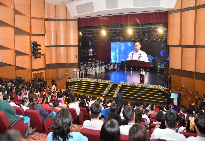 Vice-Chairman of the State Administration Council Deputy Prime Minister Vice-Senior General Soe Win delivered a speech at the 79th Anniversary celebration of MRTV at its head office in Tatkon of Nay Pyi Taw yesterday morning.