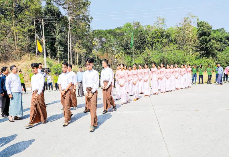 Members of ethnic traditional culture troupes from Sagaing Region and Chin, Rakhine and Shan states who will attend the 78th Anniversary of Union Day celebration 2025 arrived at Nay Pyi Taw yesterday morning.