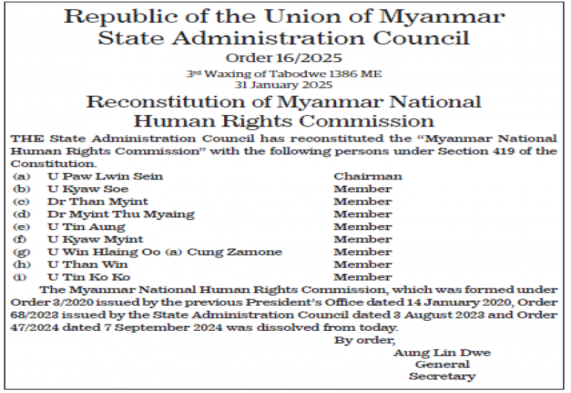 Reconstitution of Myanmar National Human Rights Commission
