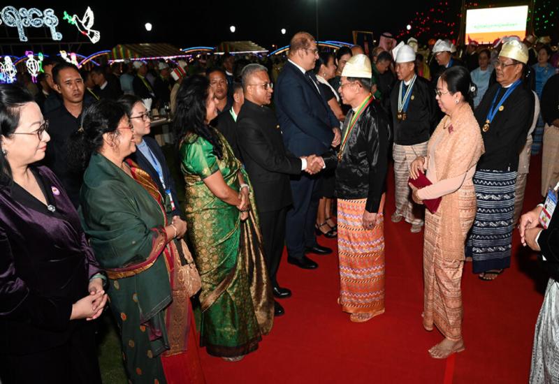 A dinner in honour of the 77th Anniversary of Independence Day hosted by State Administration Council Chairman Prime Minister Senior General Thadoe Maha Thray Sithu Thadoe Thiri Thudhamma Min Aung Hlaing and his wife Daw Kyu Kyu Hla took place in conjunction with the honourary entertainment ceremony at the lawns of the SAC Chairman Office in Nay Pyi Taw yesterday evening.